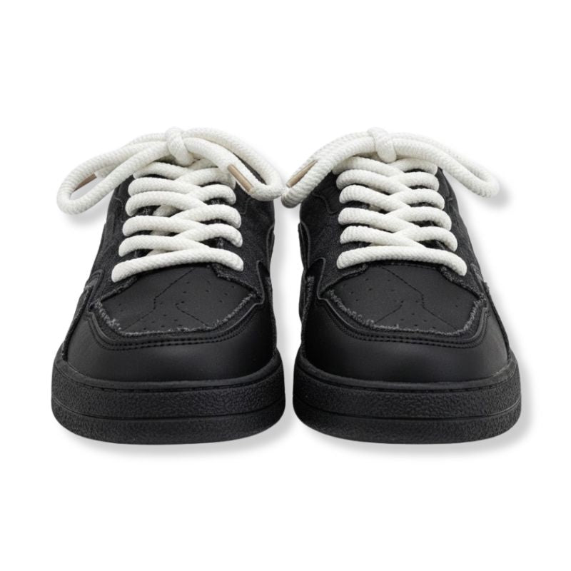 Textured Outsole: A robust, grainy black rubber sole that balances the edgy upper with timeless durability.